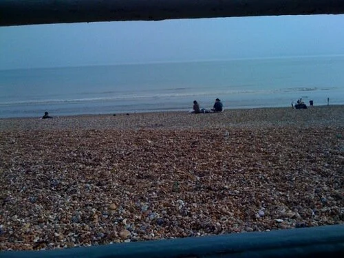 Framed by the railings. Low tide in hove.