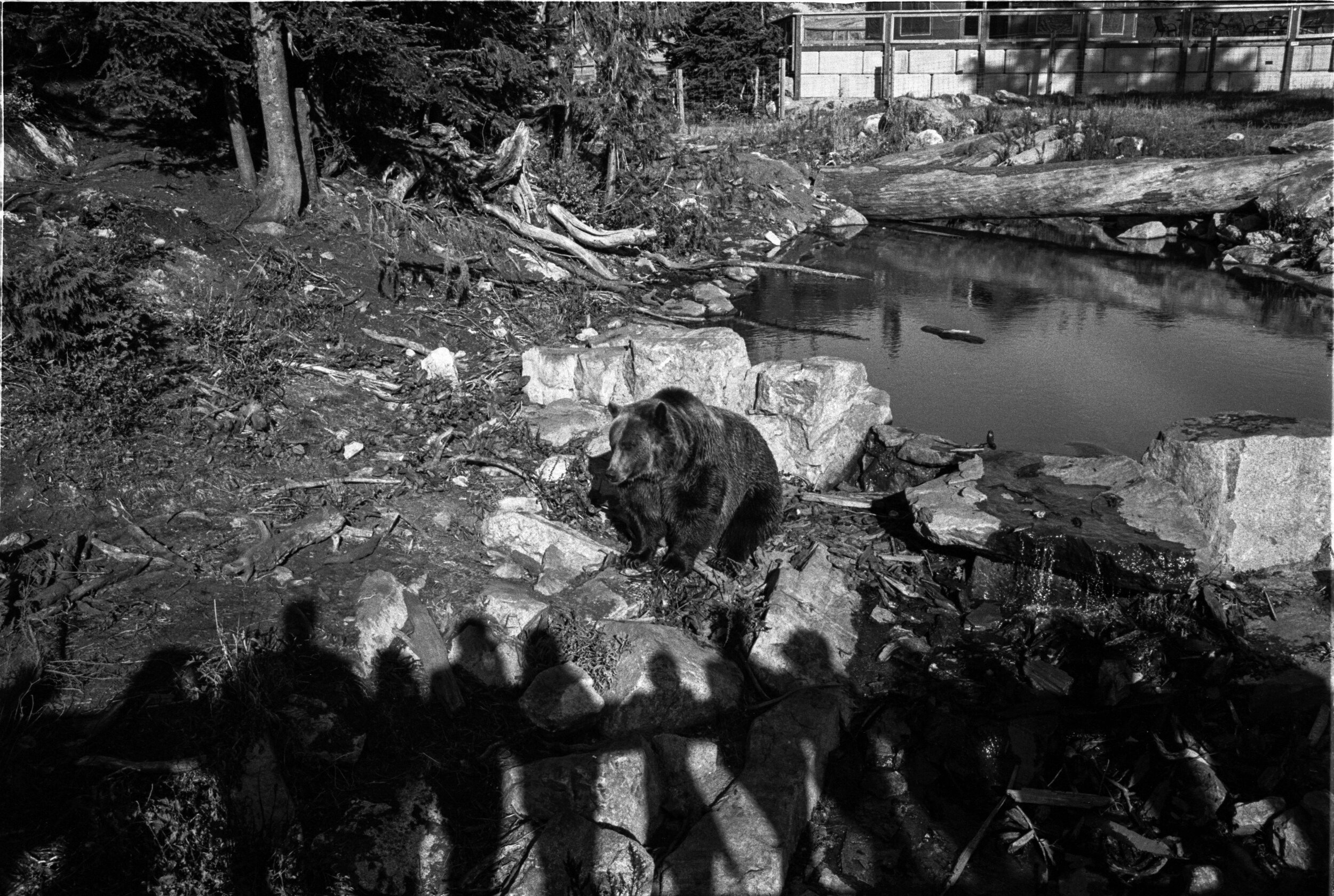 Near the top of Grouse Mountain in North Vancouver, nearly 1231 meters high, Grinder the grizzly bear is sitting in the midday sun. He is watched by a group of excitable tourists, clutching iPads, iPhones and other cameras to capture this moment. The tourists stand behind double fences for their protection.